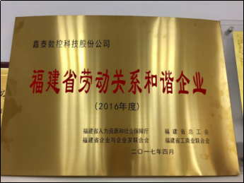 嘉泰數(shù)控:被授予“福建省勞動關系和諧企業(yè)”榮譽稱號 |